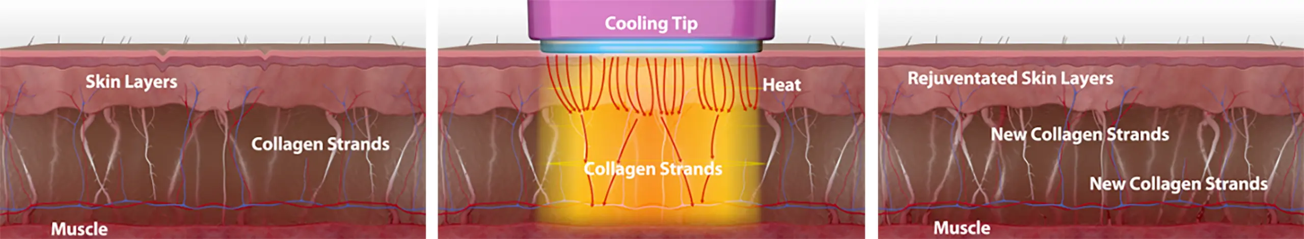 Thermage uses heat to stimulate new collagen in the deepest layers of your skin, it’s slightly more uncomfortable than treatments that deliver heat to superficial layers of the skin, such as our IPL or Fire + Ice facials. You’ll feel a brief heating sensation when the device’s tip touches your skin, followed by a cooling sensation that helps protect your skin and minimize any discomfort. One of our specialists will walk you through how to prepare for this treatment during your consultation.